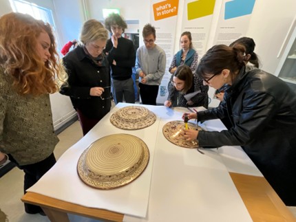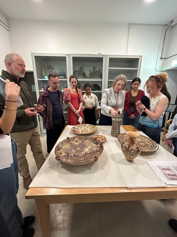 TCD Art History students examining Spanish Lustreware ceramics during a research visit to
