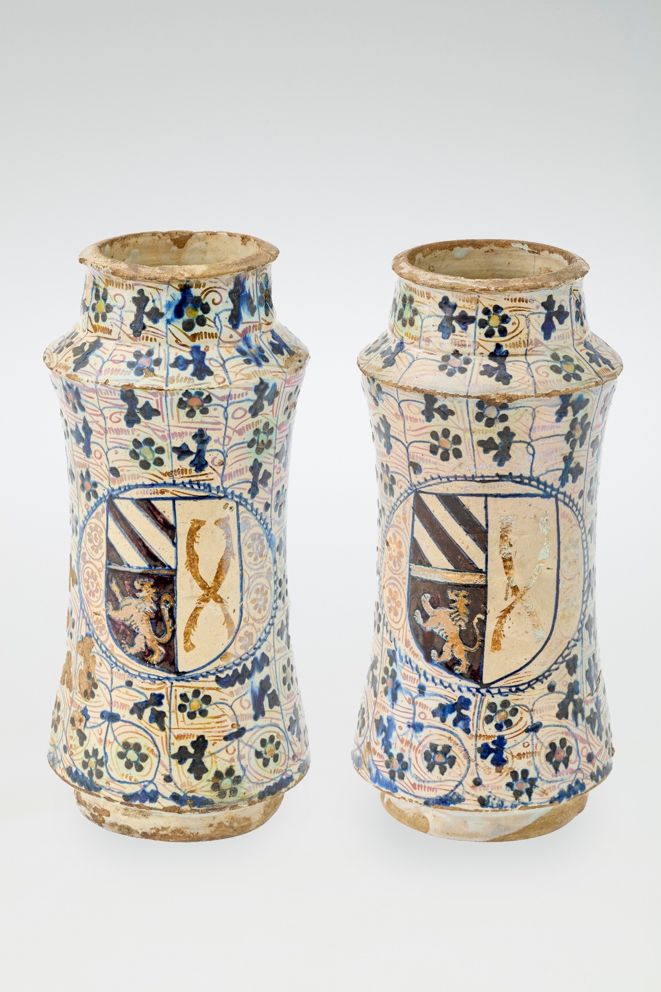 Pair of albarelli, late 15th century, (DC:1885.329-330) National Museum of Ireland