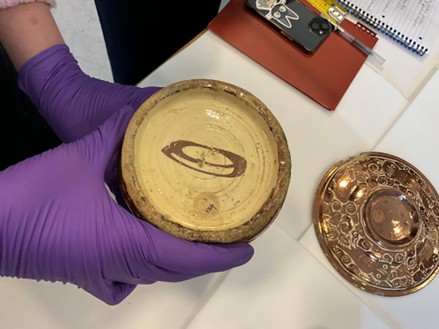 An intriguing find concerned a pair of albarelli. While albarelli were commonly used as domestic containers or medicine storage vessels, we concluded that these likely served display purposes, most likely due to their unglazed interior, something we would not have been able to uncover if we hadn't physically interacted with them.