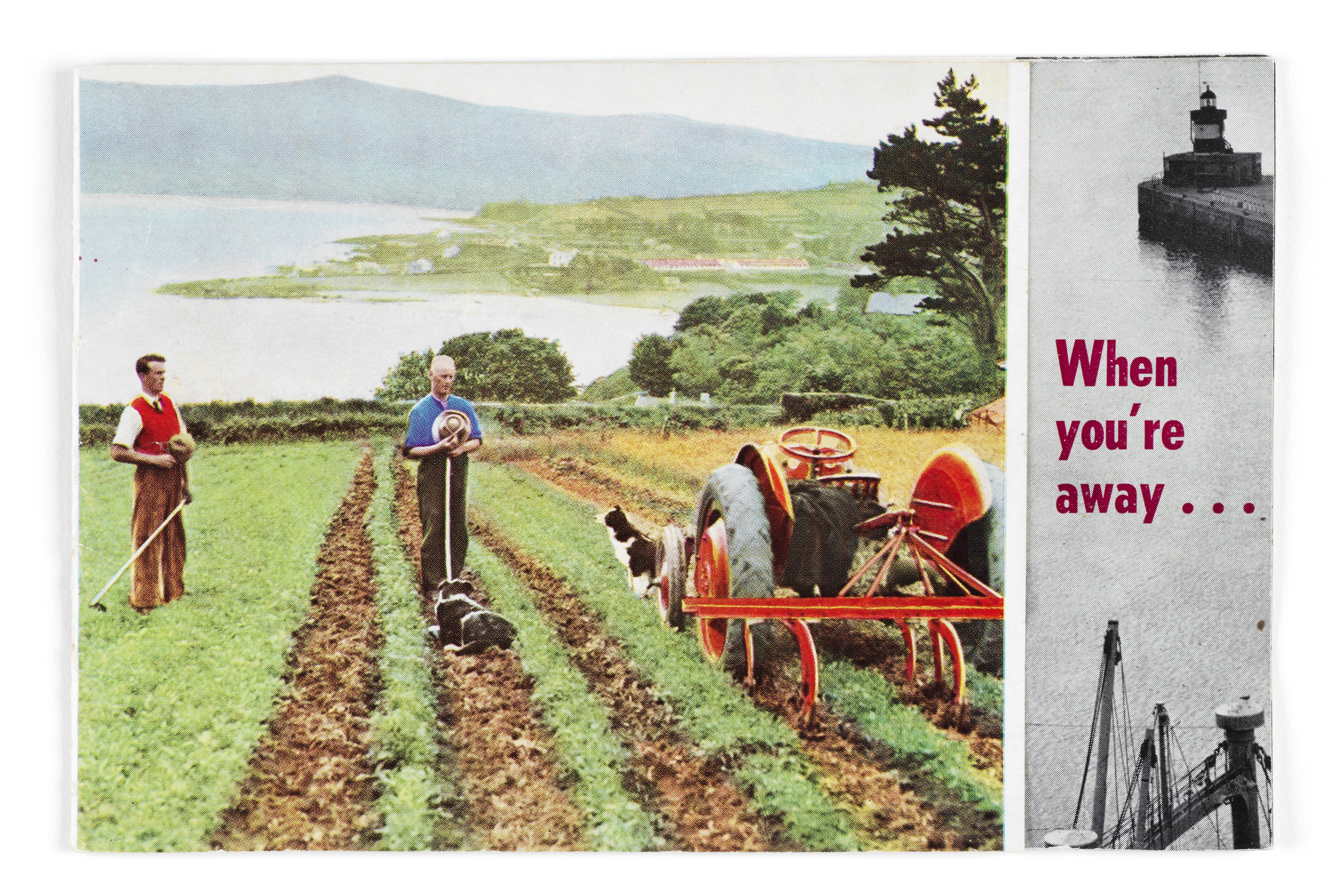 The Bureau was established in 1942 to assist Irish emigrants. This particular booklet was written for Irish emigrants to England. It was affiliated with the International Catholic Migration Commission and its representatives were members of the Legion of Mary in Britain and Wales.The cover shows two men at work in a field, sea and mountain as backdrop behind them. The men have stopped their work to pray, possibly for the noon Angelus. The Angelus is a prayer, traditionally recited three times a day. The image on back cover is of a street scene in London, possibly Fleet Street with St. Paul’s Cathedral in the distance.