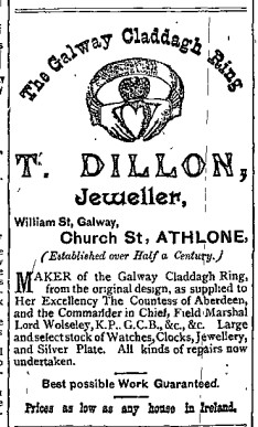 W. Dillon wrote in the Journal of the Galway Archeological and Historical Society in 1905, that the ring was worn ‘roughly from the Aran isles on the west, all through Connemara and Joyce’s Country and then eastwards and southwards for not more than 12 miles.’