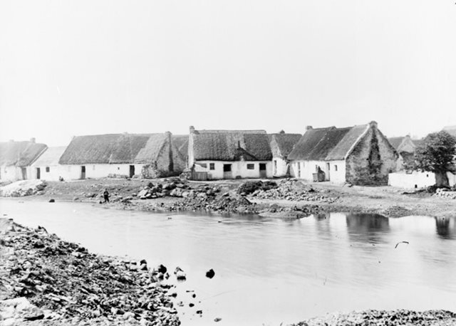 The Claddagh (known as An Cladach in Irish) is an Irish-speaking, fishing village, outside of the limits of Galway City. It was well known for its unique customs, which included the election of a King of the Claddagh on the twenty-third of June every year. In the 19th and early 20th centuries, the Claddagh was a unique settlement of mud walled, thatched cottages, with irregular streets and lanes. It was declared an ‘unhealthy area’ in 1927, and the traditional houses were demolished over the following years.