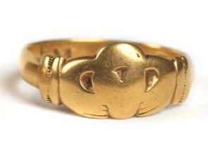 The design shows two hands clasping a crowned heart, which is thought to represent friendship, love and loyalty. It also resembles a fede ring, a ring symbolizing friendship, which dates back to the Roman Era. Claddagh rings were used as marriage and betrothal rings and are still popularly worn today.