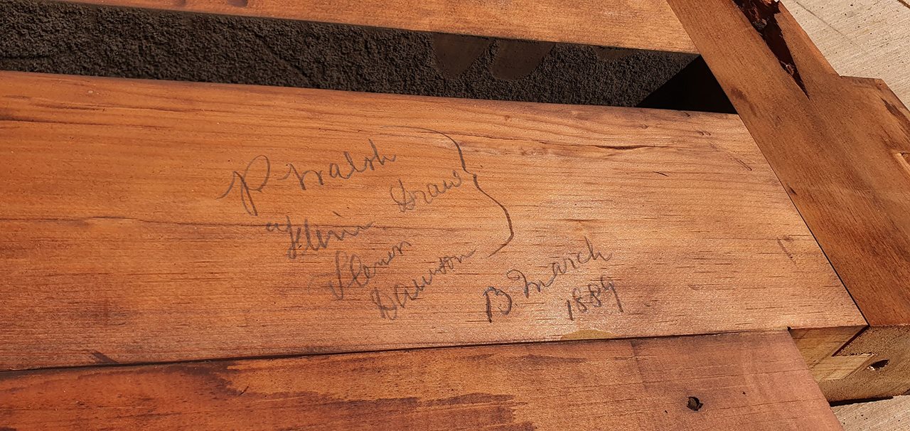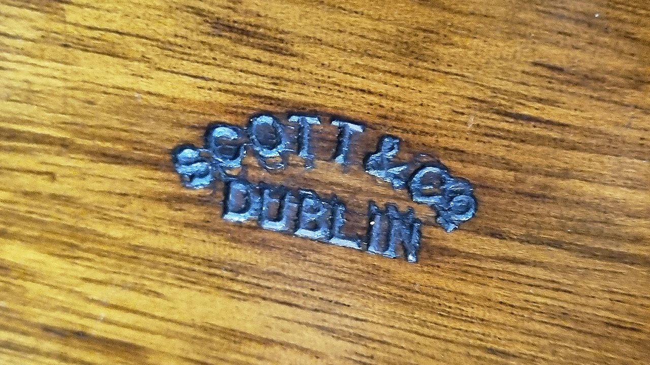 For the most part, our display cases are made from mahogany and plate glass – materials that are no longer available. The Museum has developed and evolved over hundreds of years, since its early days in 1733, when the RDS started exhibiting raw materials and new inventions. Over this period, display cases were occasionally made by state workshops, but the majority of cases were manufactured by private cabinet makers in the locality. Some vendor names which appear in RDS records are Scott & Co. (see image carousel), Thos. Jones, William Dawson, James Beckett, and H.W. McDowell. Upon dismantling one case we even discovered the surreptitious signatures of cabinet makers on the interior (see image carousel)!