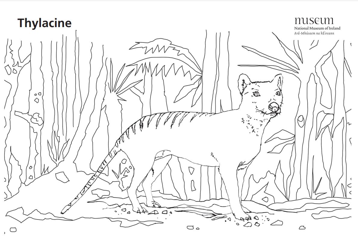 Now you know about the thylacine, bring your own to life with our colouring sheet below. Once you have coloured in the thylacine why not visit the Dead Zoo Lab in the National Museum at Collins Barrcks to see our specimen up close?Location: