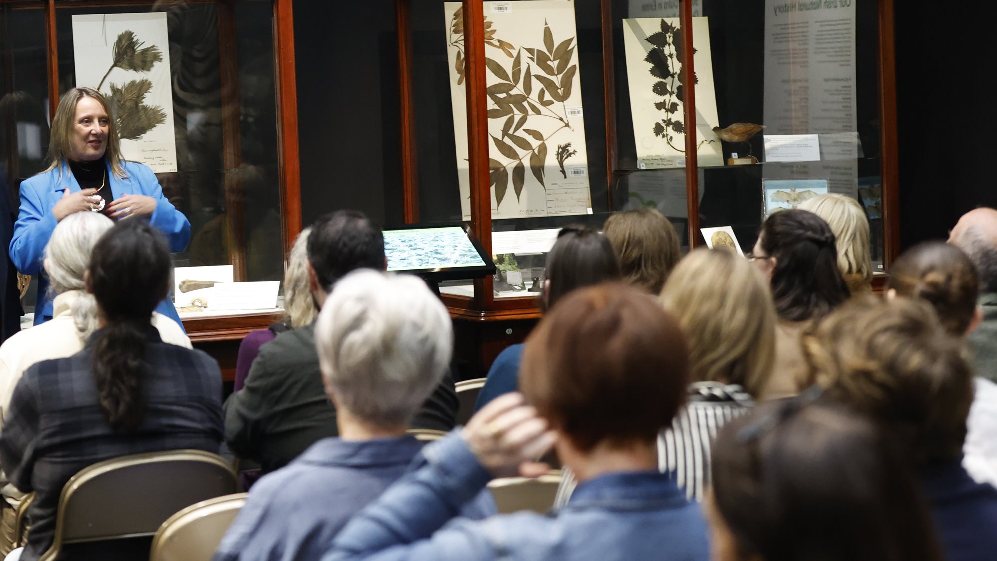Above: Hazel Morrison, Moycullen Heritage Group, speaking at the launch of Our Irish Natural History in 'The Dead Zoo Lab'. Imabe: Julien Behal